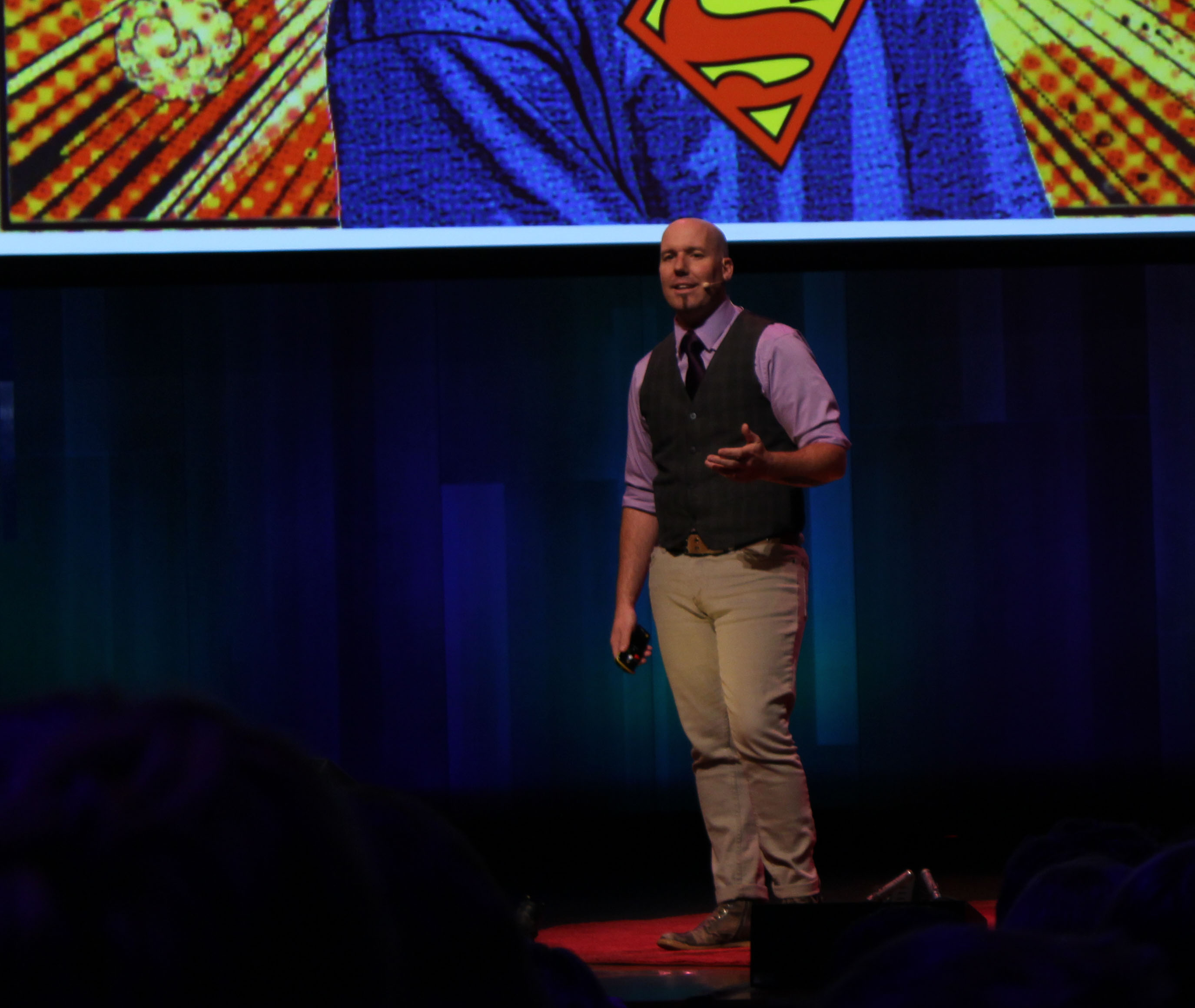 At the end of the first session, Matthew LaPlante opened his talk up to the audience by allowing them to send their live tweets to a screen on stage. This helped emphasize the premise that citizen journalism is overtaking the field of professional journalism. LaPlante compared professional journalists to superheroes such as Superman and Spiderman. He said that it is important that these “heroes” do not fear their own death, but rather train the everyday citizen so that the news can continue to live.